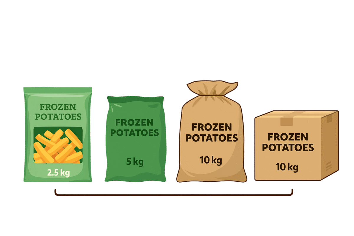2.5 kg, 5 kg, and 10 kg food-service packs in export cartons. Private label and artwork support available.
